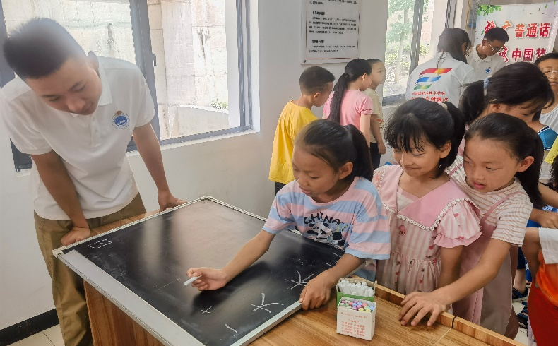 由学院团委、学生会组建的社会实践团前往昭通市永善县开展“推普助力乡村振兴”社会实践活动。实践团在永善县易地搬迁安置区——永红社区和红光社区,依托“团团陪伴?助力‘双减’”活动载体,为留守儿童开展了铁路知识小讲座、普通话小课堂、童心向党经典诵读、红色歌曲传唱、互动游戏等推普活动;通过与社区领导座谈、深入社区实地走访并发放问卷调查,了解掌握异地搬迁居民掌握和使用普通话的情况,积极向广大居民宣传普及普通话。实践团还参观了永善红光村史馆、永善脱贫致富产业示范园明子村,让同学们更加深刻感悟语言文化的学习和传播对促进乡村产业振兴、人才振兴、文化振兴、生态振兴起着重要作用。