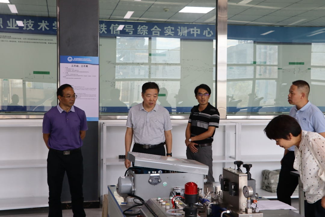 随后,焦胜军一行参观了学院机车检修实训基地、城市轨道交通实训基地、云南高速铁路技术公共实训基地等教学实训场所,相关负责同志为大家介绍了各实训场所的建设及使用情况。
