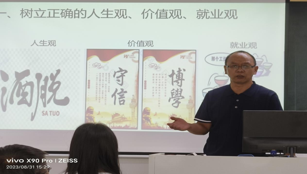 他立足课堂,通过《军事理论》课程增强学生爱国主义情怀,以《职业指导》课程为平台,主动结合就业真实案例,从引导学生转变就业观念到帮助学生树立正确人生观、价值观及择业观,从就业面试技巧到职业素养全方位对学生进行就业指导,让课程教学与学生实际得到有效契合。