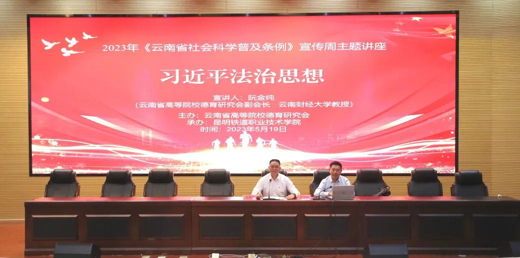 为进一步提升全院师生法治素养,推进法治校园建设。5月19日,2023年云南省社科普及宣传周暨“百名专家讲法治”活动在我院举行。