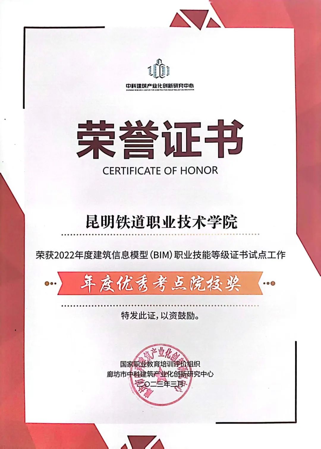 我校在2022年度建筑信息模型(BIM)职业技能等级证书试点工作中荣获佳绩