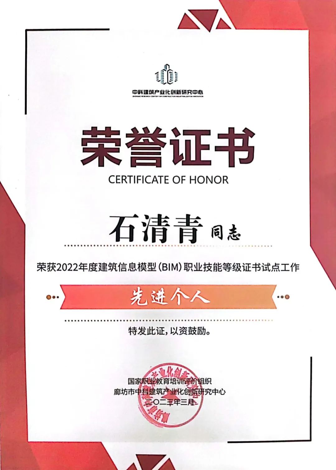我校在建筑信息模型(BIM)职业技能等级证书考核站点中荣获“2022年度建筑信息模型(BIM)职业技能等级证书试点工作优秀考点院校奖”,我校电气工程学院石清青老师荣获“2022年度建筑信息模型(BIM)职业技能等级证书试点工作先进个人”。