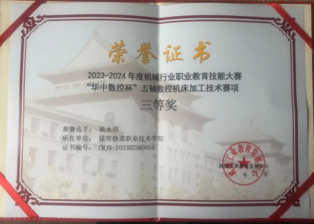 我校教师在2023-2024年度机械行业职业教育技能大赛“华中数控杯”五轴数控机床加工技术赛中获佳绩