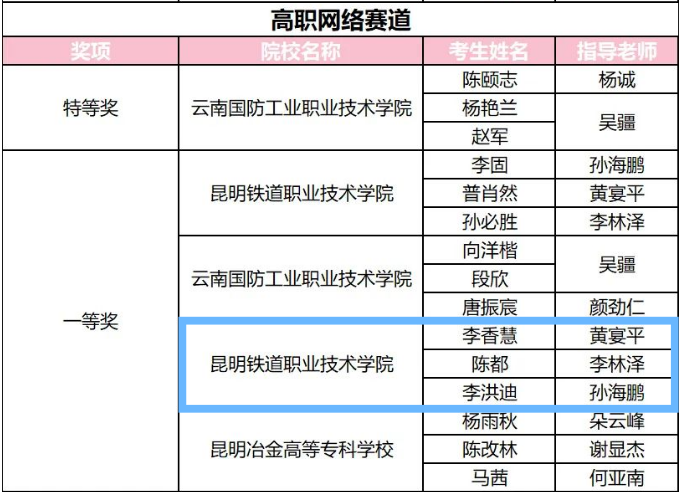 近日,华为ICT大赛2022-2023中国区云南省赛颁奖典礼在昆明举办。我校师生在前期比赛中荣获多项荣誉,其中计算赛道一等奖1名;网络赛道一等奖2名、二等奖1名、三等1名;云赛道斩获特等奖,将代表云南省高职院校参加全国总决赛。