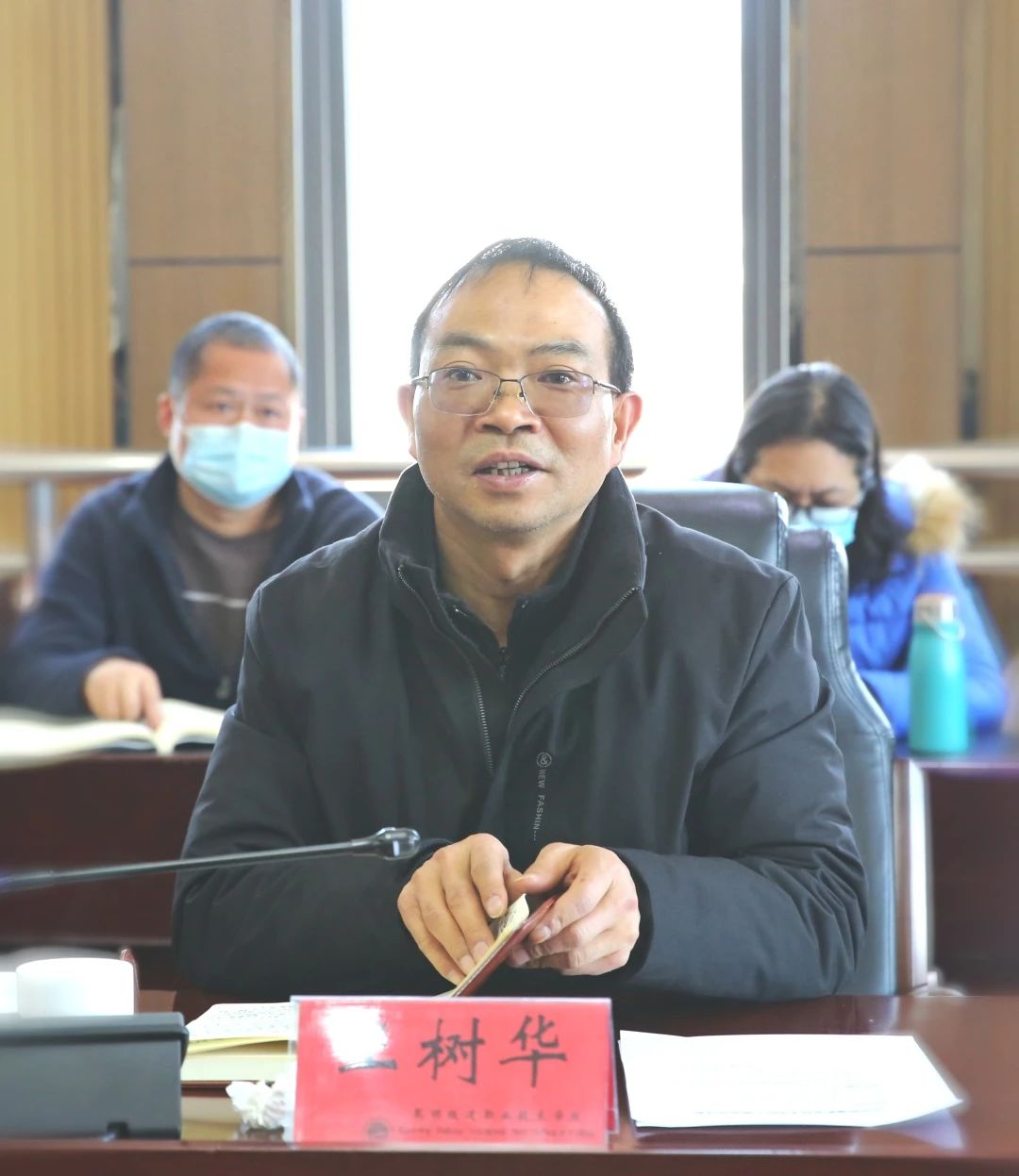 王树华同志在会上作了表态发言,表示一定认真贯彻落实市委市政府部署要求,尽快进入工作角色,适应学院高速发展的步伐,突出重点抓实抓紧党建工作。坚持党对一切工作的领导,强化干部队伍建设,抓好队伍带好头,为学院高质量发展注入新的活力。加强人才引育工程,团结带领全体教职工为国育好才,为党育好人,办好人民满意的高等职业教育。