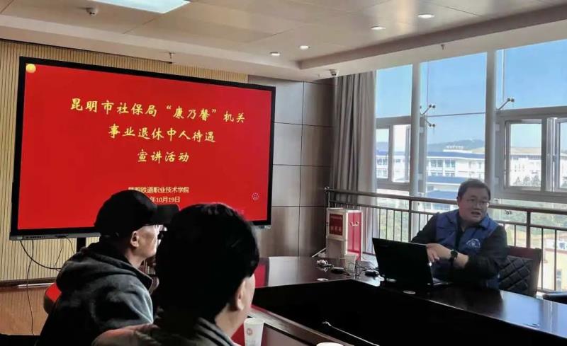 10月19日,昆明市社保局副局长付坤佳带队到我院开展昆明市社保局“康乃馨”机关事业退休“中人”待遇宣讲,学院党委副书记张学云主持宣讲会。
