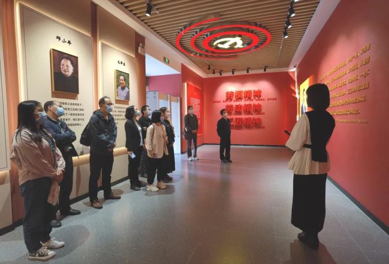 参观中,大家在不同的专题展区前驻足停留,近距离了解优秀劳动者的奋斗故事,在讲解员的带领下,回顾中国工运史、云南昆明工运史、昆明现代工业等发展历程,同时听取对历届各级各类劳动模范、先进工作者及各行各业各类工匠的介绍,聆听他们的先进事迹,观看他们所创造的产品、使用的劳动工具,记录的工作笔记等实物,感受他们的奋斗精神和精湛技艺。