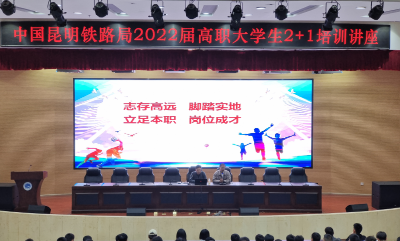 11月4日,学校特邀中国铁路昆明局集团有限公司昆明工务段首席技师徐安辉到校为昆明铁路局预签约2022届大专生工务维修岗位培训班343名学员开展题为《志存高远、脚踏实地、立足本职、岗位成才》的专题报告。