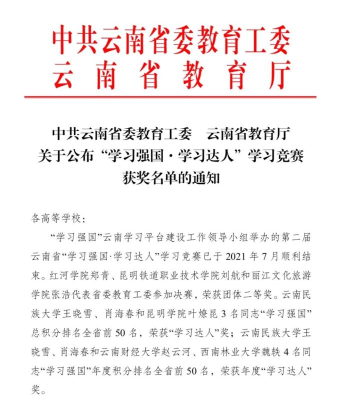 【喜讯】我校教师在第二届云南省“学习强国·学习达人” 学习竞赛中荣获佳绩!