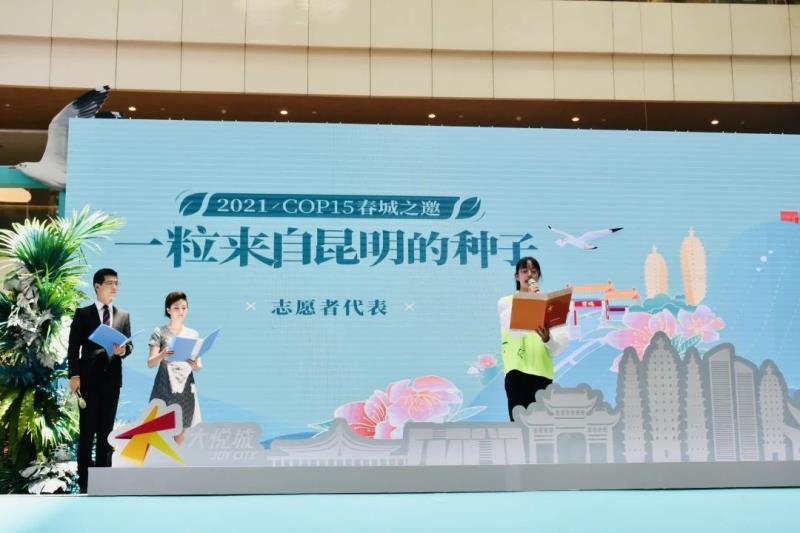 联合国《生物多样性公约》第十五次缔约方大会将于2021年10月在昆明召开,这一国际性大会,对展示我国生物多样性?;こ尚В夜拿鹘ㄉ璩删途哂兄匾庖?。6月,由中共昆明市委宣传部主办、昆明市生态环境局、共青团昆明市委协办的“2021COP15春城之邀——一粒来自昆明的种子”活动启动仪式及生物多样性文化集市在昆明大悦城举行,我校150名志愿者参加了此次活动。