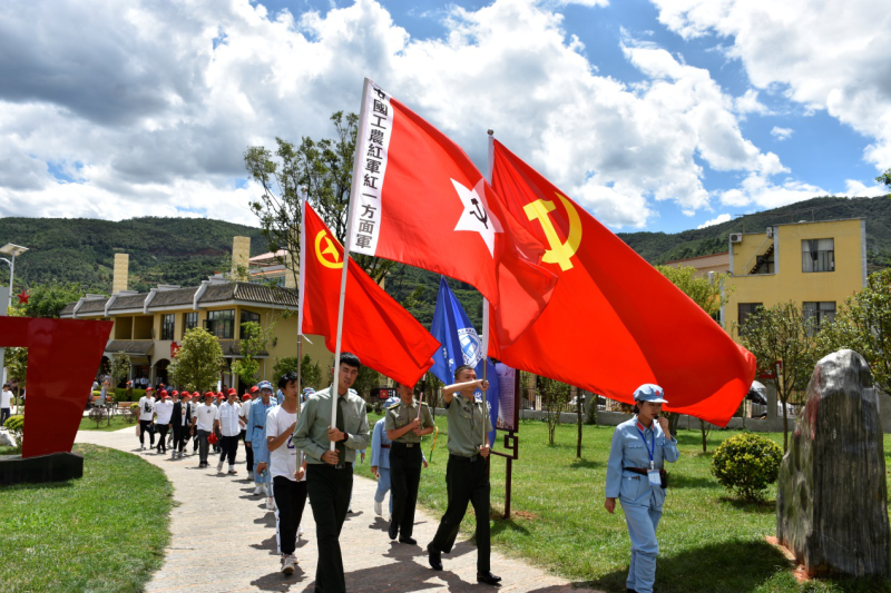 在讲解员的带领下,大家怀着对革命先烈的崇敬之情先后参观了中央红军总部驻地旧址、中央红军领导人驻地旧址和主题陈列展厅。两个驻地旧址真实再现了1935年中央红军和1936年红二、六军团长征过云南的革命史实。主题陈列厅运用现代化的展览手段展示整个长征过程及过云南、过寻甸、巧渡金沙江的丰功伟绩。厅内红军长征途中留下的一件件文物,一张张图片,难掩沧桑古朴,“居丹桂运筹帷幄,渡金沙用兵如神”,这段历史给云南人民留下了宝贵的精神财富。
