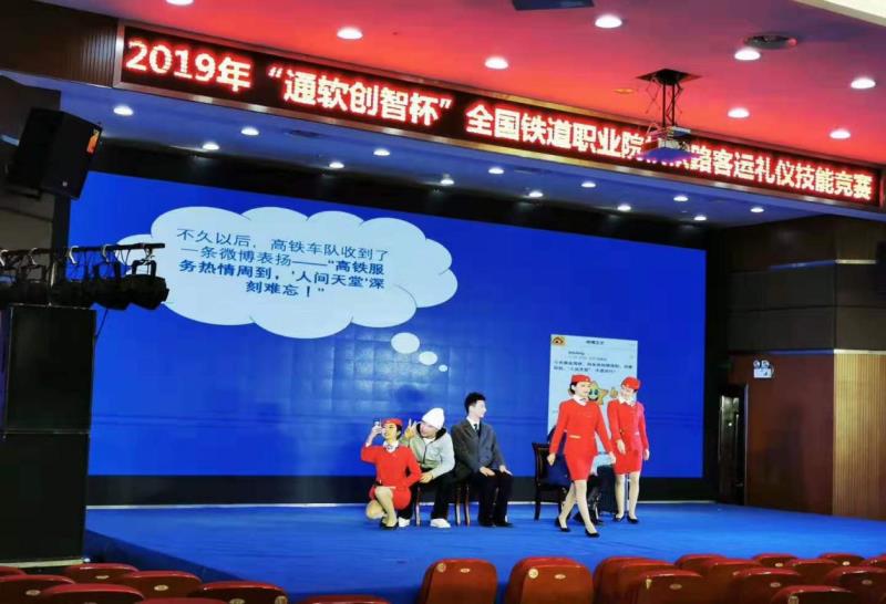 在比赛过程中,各参赛队各显神通,发挥自身特长,结合铁路客运服务特点,穿着统一的服装,在舞台上展现出学子们的风采,可谓是百花齐放,充分反映出了铁路客运学子精神风貌、文明素养和礼仪风采。