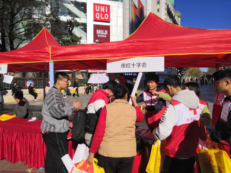 我院红十字会全体会员早早的到达活动现场,代表昆明市红十字会,在市红十字会老师的指导下发放防艾、检测宣传品,力所能及地答疑解惑,让广大市民了解预防艾滋病的有关知识,使更多的人正确认识艾滋病,积极参与到遏制艾滋病流行和健康中国建设的活动当中,共同控制艾滋病和推进“健康中国行动”,为遏制艾滋病流行作出贡献。参加活动的会员,也对艾滋病的防治形势、检测手段、治疗手段有了更加具体、全面的认识。
