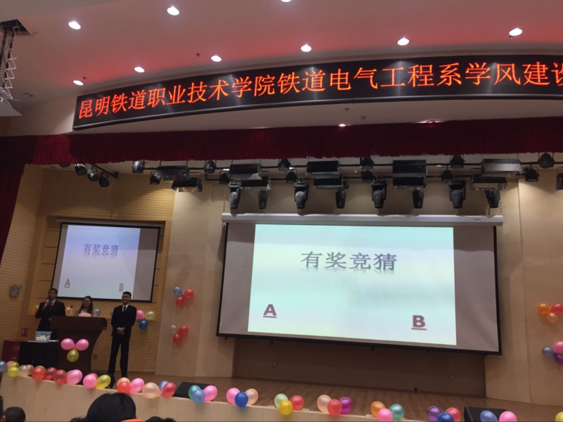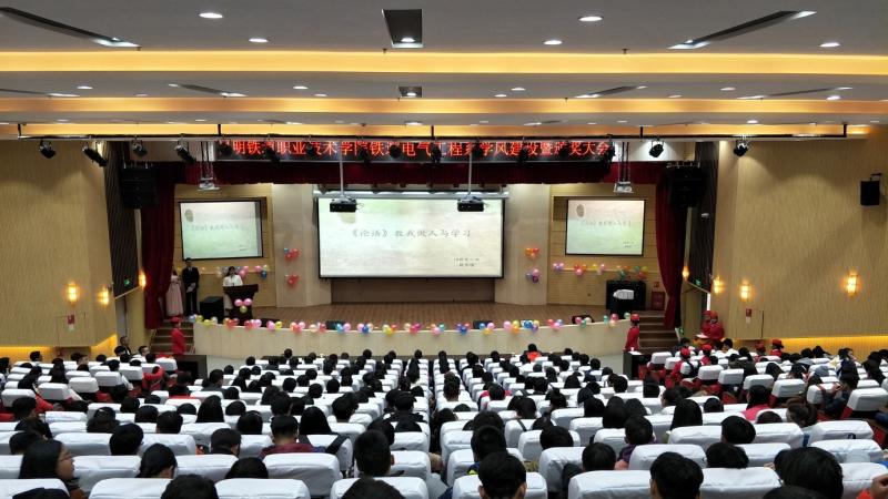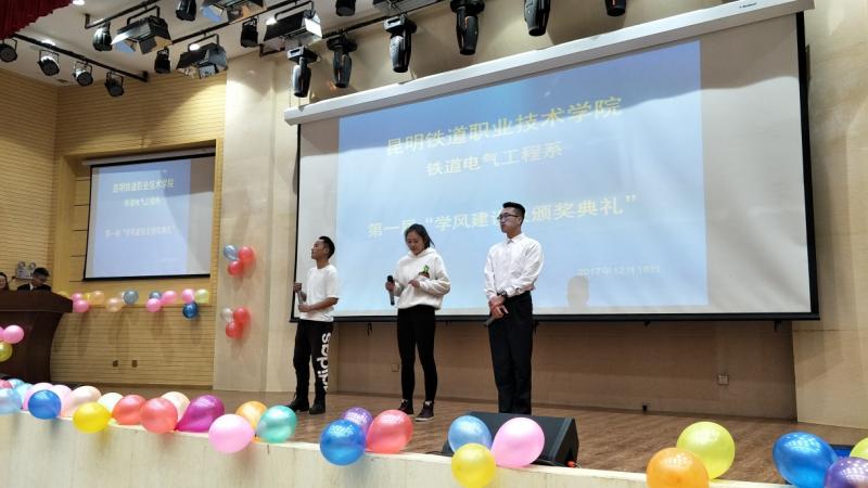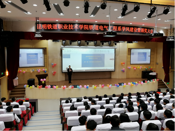 2017年12月18日14:30,铁道电气工程系全体同学在我院图书馆报告厅隆重举行第一届学风建设暨颁奖大会。系部主任邓正均老师、系部书记赵伟老师、辅导员李飞老师等出席大会并为优秀学生颁奖。