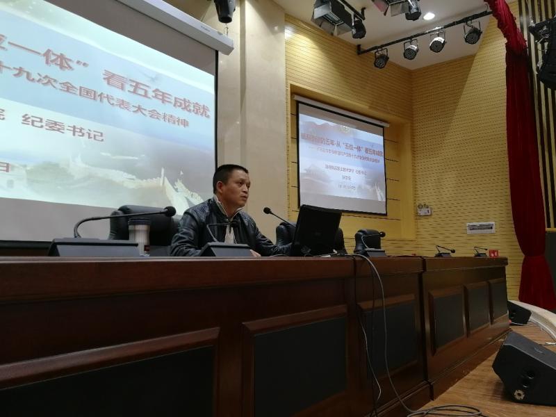 2017年12月6日,院纪委书记张学云为铁道运输系讲授《砥砺奋进的五年,从“五位一体”看五年成就—学习中国共产党第十九次全国代表大会精神》