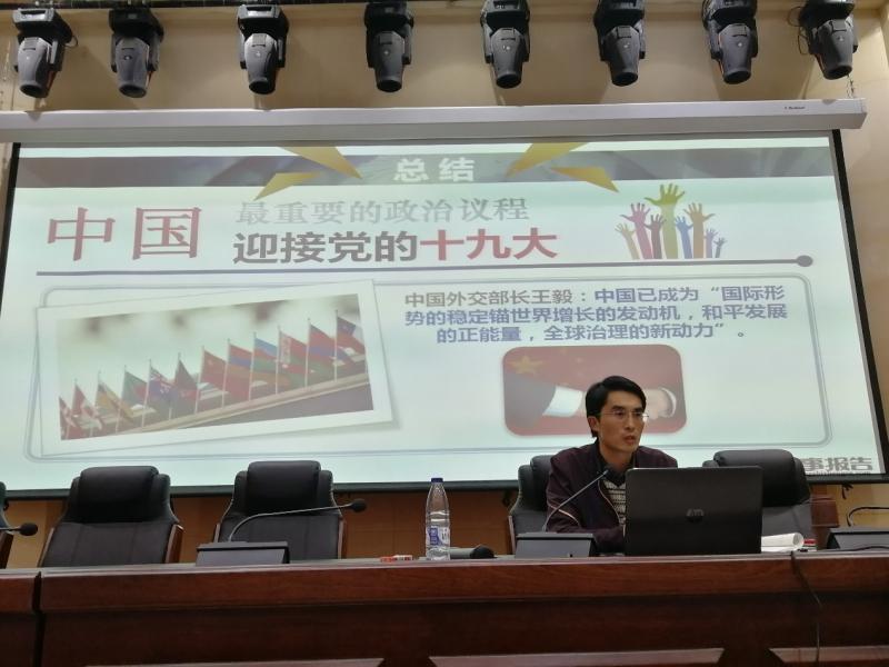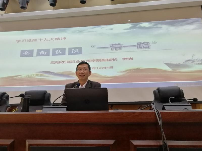 2017年12月4日,尹光副院长为铁道运输系讲授《学习十九大精神—全面认识“一带一路”》