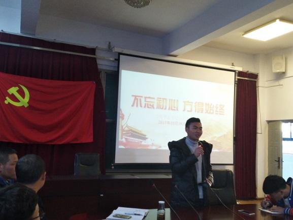 系学生会主席胡乐丰同学对十九大提出了自己的见解。倡议大家应该学习共产党人“不忘初心、牢记使命”的精神!当代大学生的初心就是学好知识、学会做人、遵纪守法。在学习知识方面提出“想方设法去学习,废寝忘食去思考”的观点,语言通俗直白,让人印象深刻!