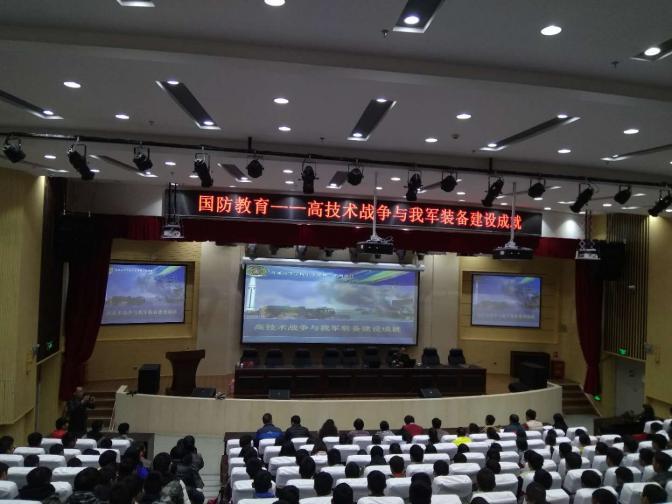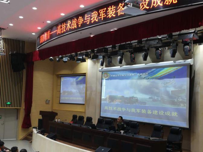 讲座专家来自陆军装甲兵学院张向忠老师。张老师从高技术战争的含义、形成与发展,高技术战争的特点、高技术战争对我国国防建设和人民军队建设的影响、我军装备建设的成就及高技术战争的发展趋势等方面结合鲜活的实例进行讲解。张老师深入浅出、生动形象的讲解,引起了同学们浓厚的兴趣,赢得了阵阵掌声。讲座结合大量的事例和图片,对我国周边安全形势进行了深入研究和剖析,对我国的军事实力、军事装备建设成就和国际及周边的发展现状进行了讲解。专家们还与师生进行了深入的互动交流。