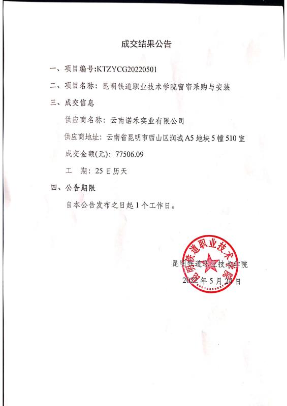 昆明铁道职业技术学院窗帘采购与安装项目成交结果公告
