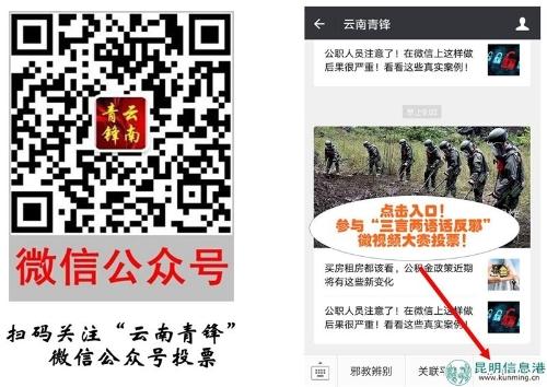 扫码关注“云南青锋”微信公众号投票