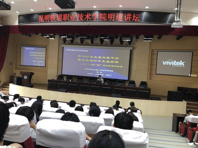 2019年5月20日,昆明铁道职业技术学院举行“一带一路”建设回顾与展望的专题讲座,讲座由昆明理工大学人文社科研究院院长樊勇教授主讲。本次专题讲座是学院“明道讲坛”系列活动之一,由机电工程系承办,副院长乔吉祥同志主持,机电工程系全体教师以及全院480余名学生聆听了讲座。